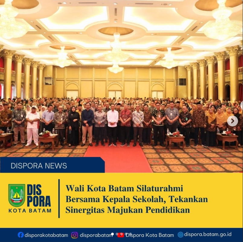 Wali Kota Batam, Amsakar Achmad bersilaturahmi dengan Kepala Satuan Pendidikan TK, SD, dan SMP negeri maupun swasta se-Kota Batam. Kegiatan ini digelar di Harmoni One Hotel, Kamis (21/8/2025).