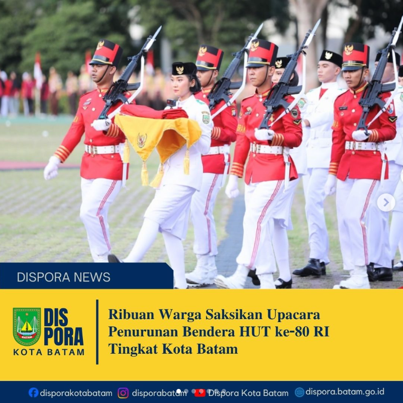 Upacara Penurunan Bendera Merah Putih dalam rangka peringatan Hari Ulang Tahun (HUT) ke-80 Kemerdekaan Republik Indonesia tingkat Kota Batam