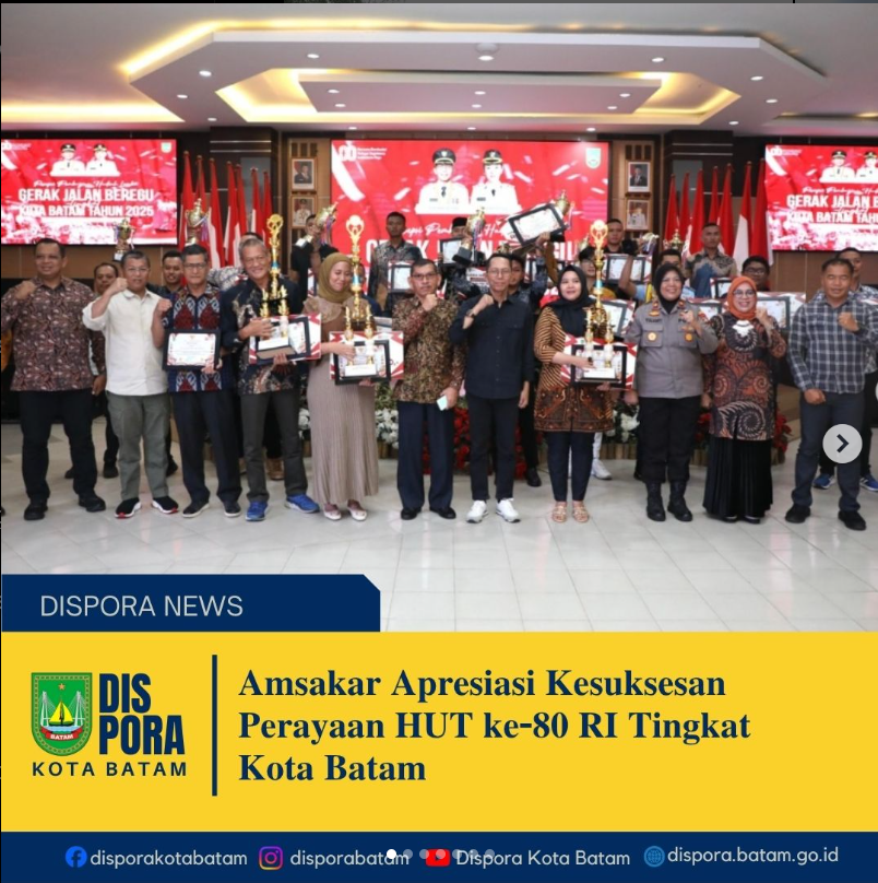 Di kesempatan itu, Wali Kota menyerahkan piala dan hadiah pemenang lomba gerak jalan beregu tingkat Kota Batam Tahun 2025 di Kantor Wali Kota Batam. Ribuan peserta dari berbagai jenjang pendidikan, organisasi, instansi pemerintah, hingga TNI-Polri sebelumnya telah ambil bagian dalam lomba yang digelar pada Sabtu (23/8/2025) di kawasan Engku Putri.